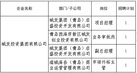 请登录“青岛人才网”(http://rc.qingdao.gov.cn),查看“城发投资集团有限公司”招聘公告。